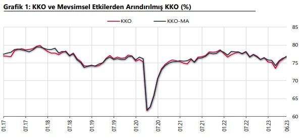 Mevsimsel etkilerden arındırılmış kapasite kullanım oranı da (KKO-MA) bir önceki aya göre 0,3 puan artışla yüzde 76,6 oldu.