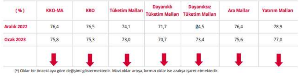 Mevsimsel etkilerden arındırılmış kapasite kullanım oranı da (KKO-MA) bir önceki aya göre 0,6 puan azalışla yüzde 75,8 oldu.