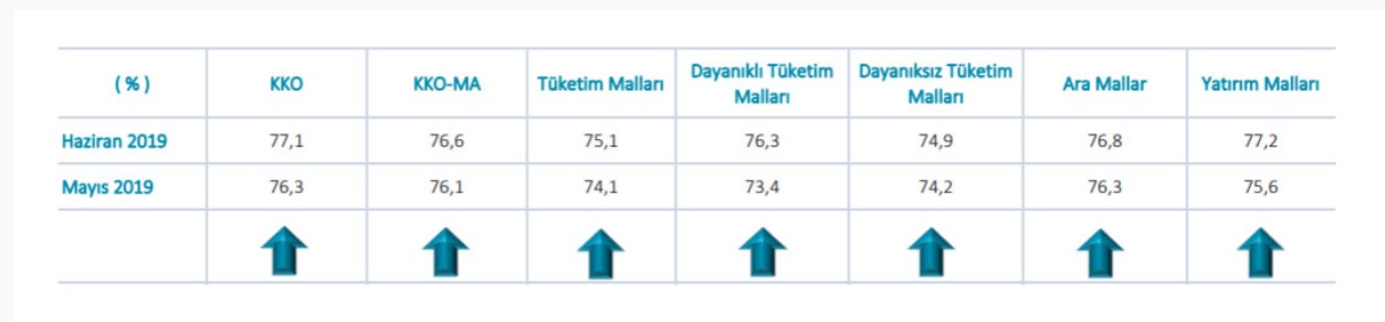 İmalat sanayi genelinde kapasite kullanım oranı (KKO), haziranda bir önceki aya göre 0,8 puan artarak yüzde 77,1 seviyesinde gerçekleşti.