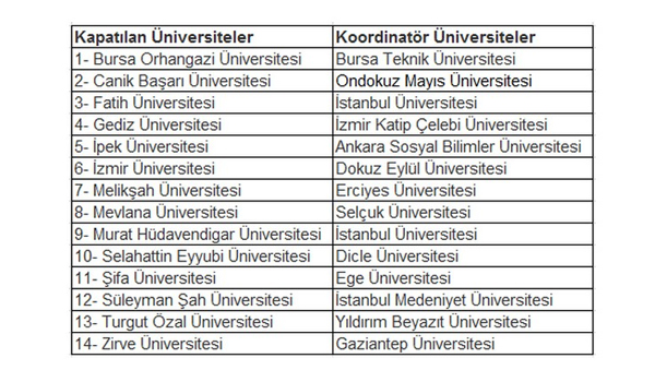 Mezuniyeti hak etmiş olduğu halde üniversitelerinin kapanmasından dolayı diploma alamayan öğrencilerin diplomaları koordinatör üniversiteler, öğrenim görmekte olan öğrencilerin diplomaları yerleştirilecekleri üniversiteler tarafından düzenlenecek.”