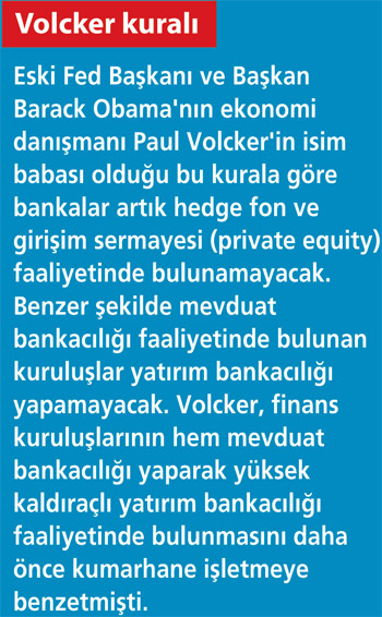 Finans piyasalarını sıkı kontrol altına alan reform paketinin mimarı ekonomist Paul Volcker, 1979-1987 yılları arasında ABD Merkez Bankası Fedin başkanlığını yaptı. Bugün 82 yaşında olan Volckerin döneminde Fed uyguladığı politikalarla ABDyi hem durgunluk hem enflasyonun bir arada yaşandığı stagflasyon sürecinden çıkardı. 1981 yılında yüzde 13.5lere ulaşan enflasyon 1983 yılında yüzde 3.2 seviyesine indi.