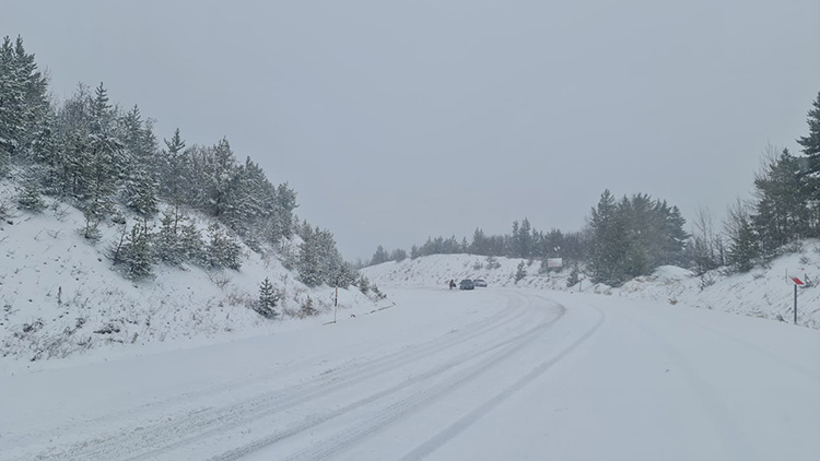 Karayolları ekipleri, karla kaplanan bölgede ulaşımın aksamaması için çalışmalarını sürdürüyor.