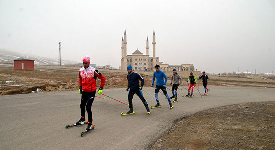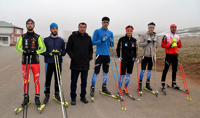 Kentte kar yağmaması nedeniyle asfaltta antrenman yapan sporcular, şampiyonadan dereceyle dönmeyi hedefliyor.