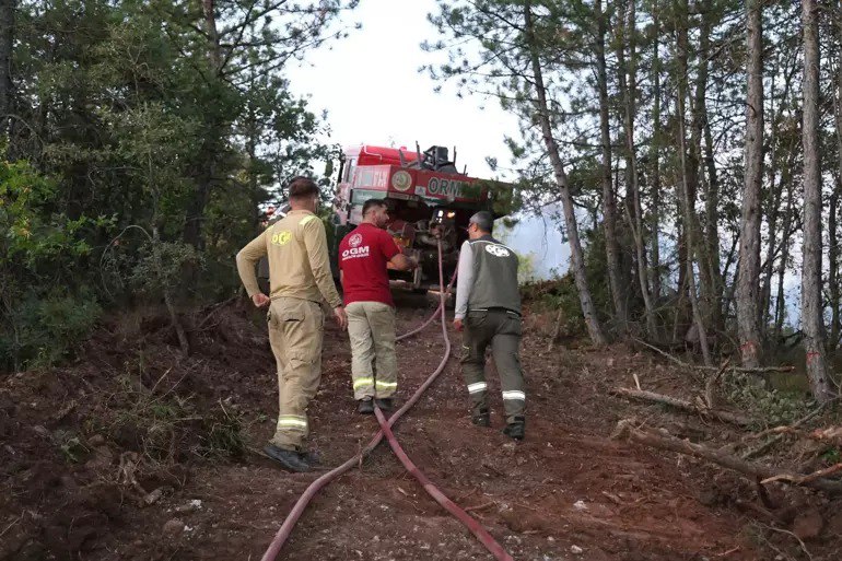 40 hektarlık alanda etkili olan yangına 73 araç ve 208 personel ile karadan, 2 yangın söndürme helikopteri ile havadan müdahale devam ediyor.
