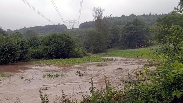 Düzce'nin Yığılca ilçesinde etkili olan sağanakta dereler taştı, birçok köy evini su bastı.