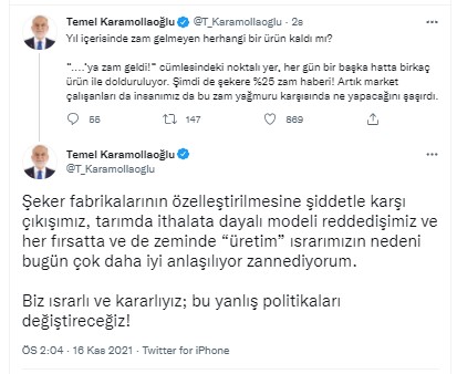 Saadet Partisi (SP) Genel Başkanı Temel Karamollaoğlu, şekere yapılan yüzde 25 zammına sosyal medya hesabından yaptığı açıklamayla tepki gösterdi.