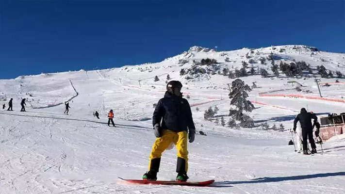 Güneşin etkisiyle mükemmel bir kayak havası sunan merkezde, tatilciler karla kaplı zirvelerden kaymanın heyecanını yaşadı.