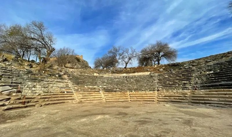 Geçen yıl yapılan kazılarda antik kentin tiyatro kısmı büyük ölçüde açığa çıkarılırken, burada bulunan 10 kabartma mask heyecan yarattı. Bulunan maskların o dönem sahnelenen tiyatro oyunlarını betimlediği, drama için asık yüzlü, komedi için ise güler yüzlü masklar yapıldığı tespit edildi.