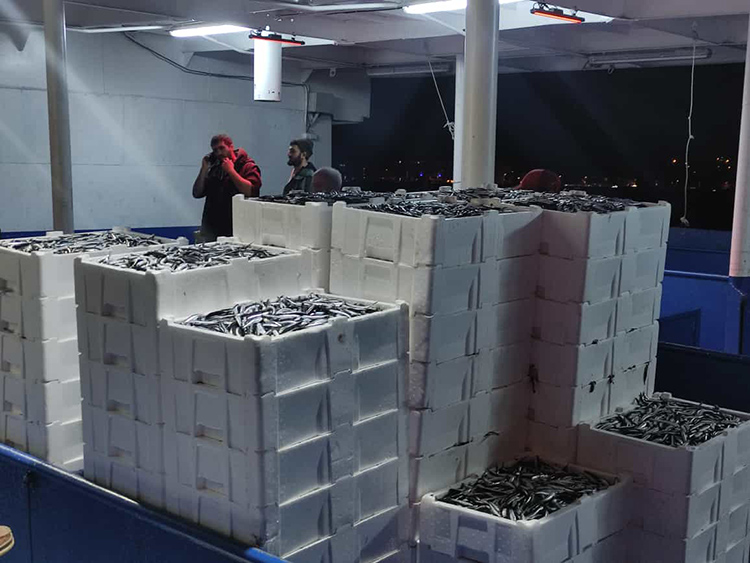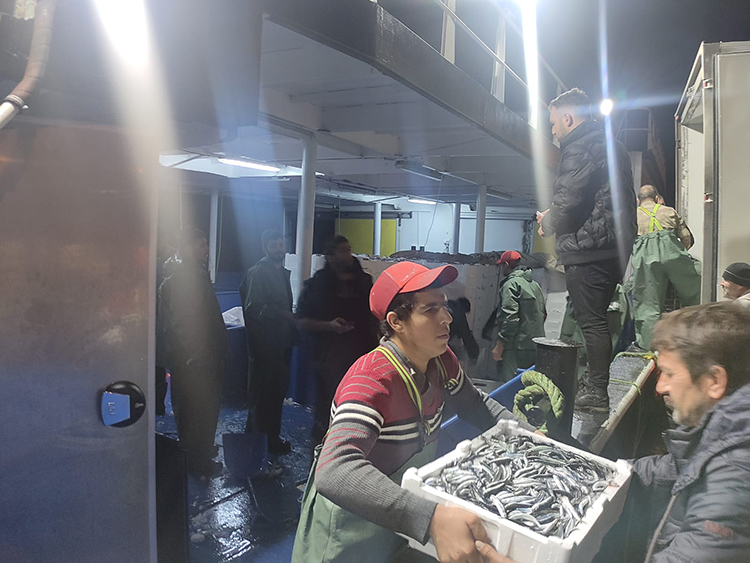 Balıkçı gemisinin kaptanı Muhammed Önder, 1500 kasa hamsi avladıklarını ifade etti.