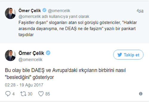 Barcelona'da ırkçı faşistlerin eylemiyle ilgili tweet paylaşan AB Bakanı Ömer