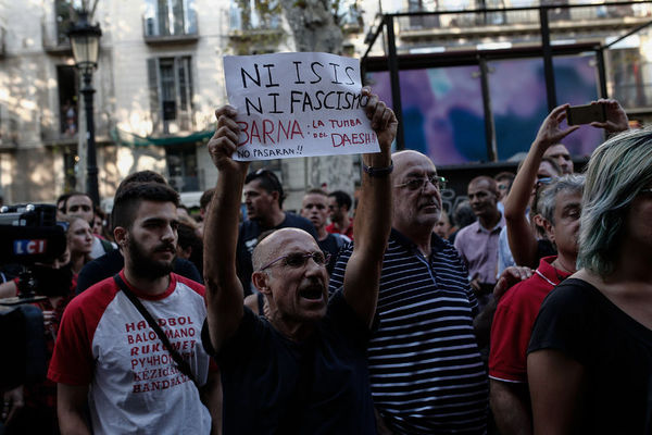 Terör saldırısının düzenlendiği La Rambla caddesinde İslam karşıtı gösteri yapmak isteyen faşist grup gerilime yol açtı.