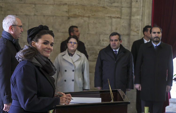 Cumhurbaşkanı Recep Tayyip Erdoğan'ın davetiyle Ankara'ya gelen Macaristan Cumhurbaşkanı Katalin Novak, beraberindeki heyetle Aslanlı Yol’dan yürüyerek Gazi Mustafa Kemal Atatürk'ün mozolesine çelenk bıraktı ve saygı duruşunda bulundu.