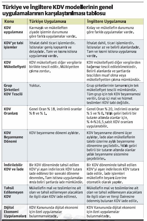 İngiltere KDV mevzuatı AB müktesebatına genel olarak uyumlu, diğer ülkelerden de çok farklı değil. En önemli farklılık, İngiltere’de çok sınırlı mal ve hizmetlerde düşük oran var ancak genel olarak tek oran olduğunu söylemek mümkün. O da yüzde 20.