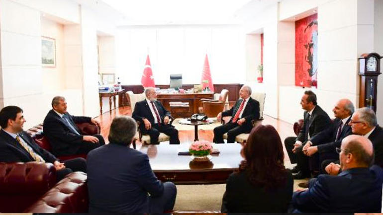 Cumhuriyet Halk Partisi Genel Başkanı Kemal Kılıçdaroğlu, Saadet Partisi (SP) Genel Başkanı Temel Karamollaoğlu ile CHP Genel Merkezinde görüştü. Görüşmede Genel Başkan Yardımcıları Bülent Tezcan, Haluk Koç, Lale Karabıyık, TBMM CHP Grup Başkanvekili Engin Altay ve İstanbul Milletvekili Mehmet Bekaroğlu da hazır bulundu.