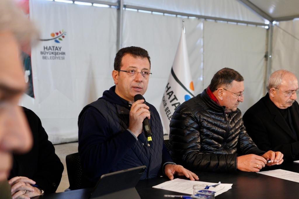 Sözlerine tüm Türkiye'ye baş sağlığı dileyerek başlayan İmamoğlu da “Kol kola, omuz omuza bu sürecin yaralarının sarılması için, öyle zannediyorum ki kısa orta, uzun vadeli bir seferberlik ilanıyla, hep birlikte bu süreci aşmayı başaracağız. Ama elbette gerçeklerle yüzleşebilirsek” ifadelerini kullandı. Büyükşehir belediye başkanları olarak, Savaş'ın koordinatörlüğünde Hatay'a ve depremden etkilenen diğer illere, ilçelere katkı sunmak için yoğun bir çalışma içinde olduklarını vurgulayan İmamoğlu, “Hatay’la ilgili Lütfü Savaş Başkanımızın koordinasyonunda etkin bir çalışmayı hep birlikte başaracağımızdan kimsenin kuşkusu olmasın” dedi. İmamoğlu, AFAD tarafından Hatay ile eşlenen Hatay özelinde yaptıkları katkıları ve çalışmaları şu sözlerle özetledi: