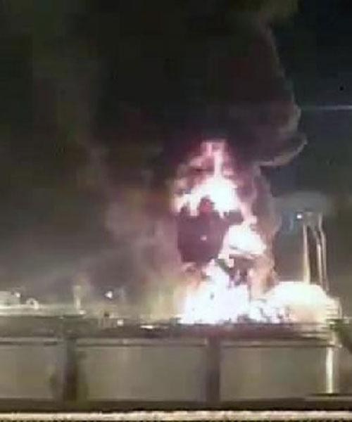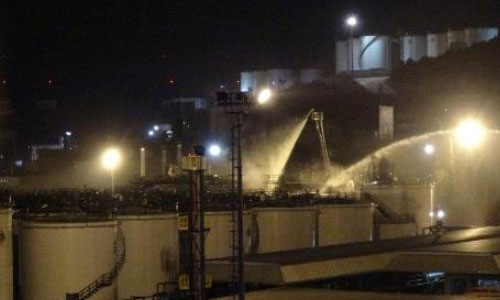 Yangına müdahale eden itfaiye ekipleri, alevleri diğer tanklara sıçramadan söndürdü.