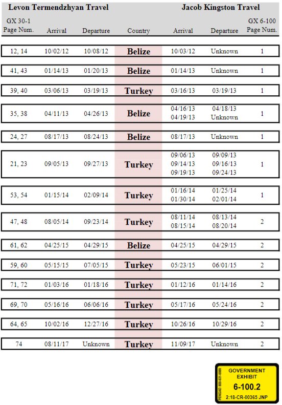 Savcılık, Termendzhyan ve Jacob Kingston'un Türkiye'ye 9 kez seyahat ettiğini belirtirken, dosyaya bu ziyaretlerde çekilmiş fotoğrafları da koydu.