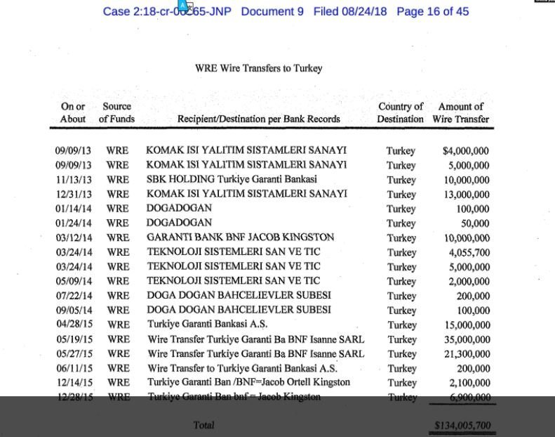 Para trafiğinin ayrıntılarıyla açıklandığı iddianamede, Türkiye’ye çeşitli zaman dilimlerinde aktarılan 134 milyon dökümü şöyle gösterildi.
