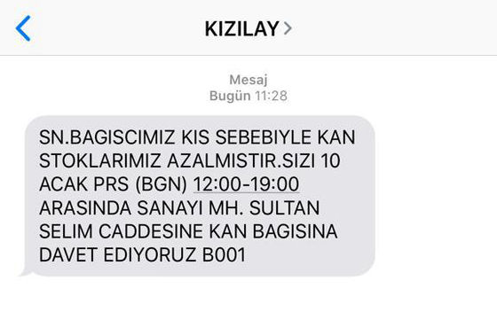 Kızılay olarak her gün yaklaşık 9 bin ünite kan bağışı almamız ve hastanelere ulaştırmamız gerekiyor. Ancak kan bağışlarımız şimdilik günlük 7 binler dolayında ve soğuk ve yağışlar nedeniyle daha da düşüş eğiliminde. Kış aylarına maksimum kan stokuyla girmemize rağmen, 60 binler dolayında olması gereken stok sayımız 40 binlerin altına inmiş durumda. Bu nedenlerle zaten duyarlı olan tüm milletimizi bir kez daha kan bağış noktalarımıza davet ediyoruz ve birbirimize ihtiyacımız olduğunu bir kez daha hatırlatıyoruz” dedi.