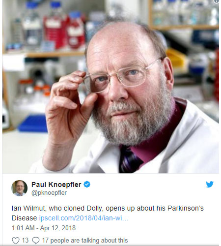 Dünyanın ilk klon koyunu Dolly ile parkinson tedavisi için yapılan araştırmalarda yeni bir sayfa açılmasını sağlayan İskoç bilim adamı Prof. Sir Ian Wilmut aynı hastalığa yakalandı.