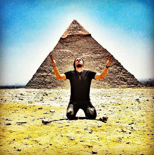 Aref Ghafouri Mısır piramitlerinin önünde diz çökerek çekildiği fotoğrafı 'Allah'ın izniyle sizin de dualarınızda sağlığıma kavuştum, beni en zor anlarımda bile bırakmayan herkese çok teşekkür ederim' notuyla paylaştı.