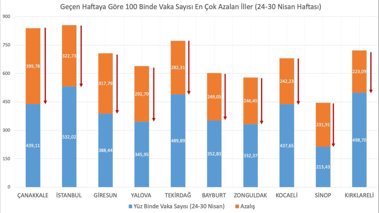 5 Mayıs 2021 tarihinde paylaştığım grafikte il adları grafiklere yanlış olarak yerleştirilmiştir. Bu teknik hata Bakanlığımız kayıtlarındaki doğru hali yeniden düzenlenerek giderilmiştir. Grafiğin doğru halini ekte yeniden dikkatlerinize sunuyorum.