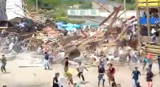 Tolima yönetim bölgesine bağlı Espinal şehrinde, ülkede geleneksel olarak yapılan boğa güreşi festivalinde izleyicilerin bulunduğu tribünün bir kısmı çöktü.