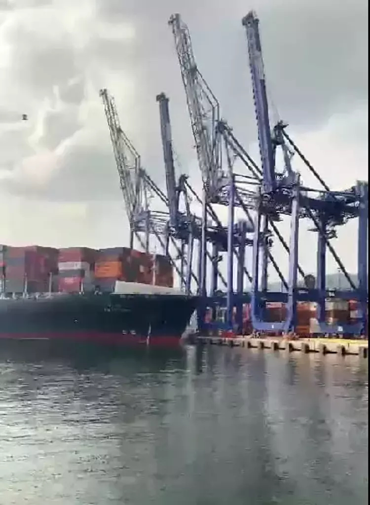 Kocaeli’nin Körfez ilçesinde özel bir limana yanaşan konteyner yüklü geminin çarptığı vinçler devrildi. O anlar, cep telefonu kamerasıyla görüntülendi.