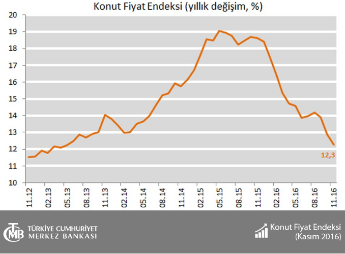 Türkiye Cumhuriyet Merkez Bankası (TCMB), 2016 yılı Kasım ayı Konut Fiyat Endeksi (KFE) verilerini açıkladı.