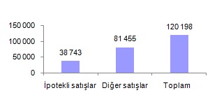 Türkiye genelinde ipotekli konut satışları bir önceki yılın aynı ayına göre yüzde 6,3 oranında artış göstererek 38 bin 743 oldu. Toplam konut satışları içinde ipotekli satışların payı yüzde 32,2 olarak gerçekleşti. İpotekli satışlarda İstanbul 6 bin 590 konut satışı ve yüzde 17 pay ile ilk sırayı aldı. Toplam konut satışları içerisinde ipotekli satış payının en yüksek olduğu il yüzde 46,9 ile Bilecik oldu.