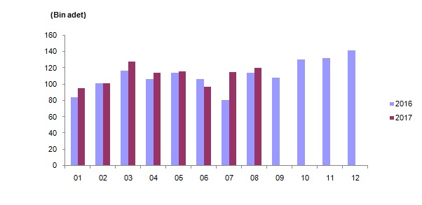 Konut satışları temmuz ayında bir önceki yılın aynı ayına göre yüzde 42 artış kaydetmişti. Haziranda 97 bin olan satış rakamı temmuzda 115 bine çıkmıştı. Bir önceki yıla bu denli artış olmasının en büyük nedeni geçtiğimiz yıl temmuz ayında yaşanan darbe girişimi idi. Darbe girişimine rağmen ağustos ayında konut satışları önceki yılın aynı ayına göre yüzde 2 artış göstermişti.