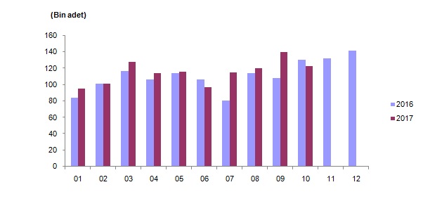 Türkiye genelinde konut satışları 2017 Ekim ayında bir önceki yılın aynı ayına göre yüzde 5,7 oranında azalarak 122 bin 882 oldu. Satışlarda bir önceki aya göre de 18 bin dolayında azalma kaydetti. Öte yandan ilk defa satılan konut sayısı bir önceki yılın aynı ayına göre yüzde 7,6 azalarak 56 bin 994 seviyesine indi.