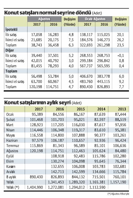 Ağustos ayında ipotekli satışların yüzde 6.3, diğer satışların yüzde 4 arttığını da belirtelim.
