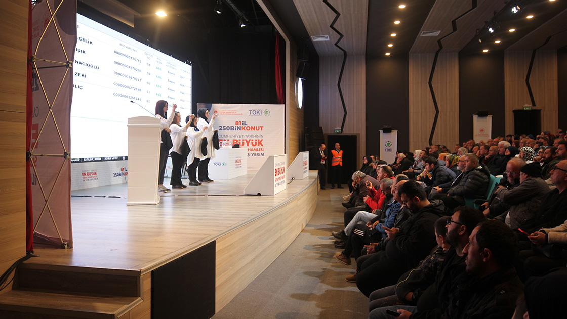 Proje kapsamında Düzce kent merkezinde yapılacak 320 konut için başvuruda bulunan 14 bin 693, Akçakoca'da 100 konut için 1315, Cumayeri'nde 100 konut için 1202, Gölyaka'da 100 konut için 941, Kaynaşlı'da 100 konut için, Merkez ilçeye bağlı Boğaziçi beldesinde 100 konut için 860 ve Çilimli'de 50 konut için 294 başvuru arasından kura çekimi gerçekleştirildi.