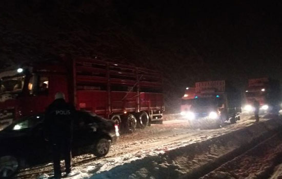 Öte yandan, kış lastiği olmayan araçların geçişine izin verilmiyor. Yolda kalan yüzlerce araç ise kurtarılmaya çalışılıyor.