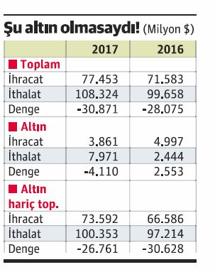Bunun sonucunda da geçen yıl altı ayda altın ticaretinde 2.6 milyar fazla vermişken bu yıl aynı dönemde 4.1 milyar dolar açık verir duruma düştük.
