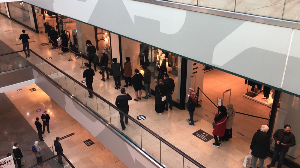 AVM’lerin açılmasıyla beraber vatandaşlar bu sefer mağaza önlerinde uzun kuyruklar oluşturdu. AVM içlerinde uzun kuyruklar kameralara yansırken indirimin vatandaşlara korona virüsü unutturduğu görüldü.
