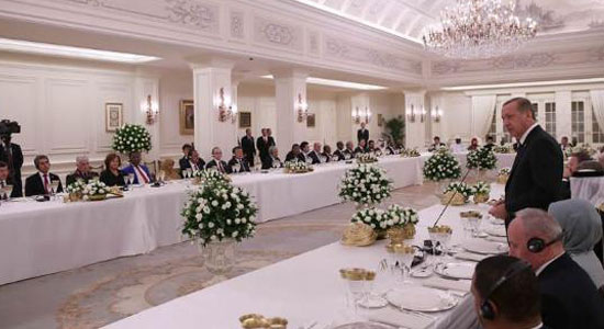 Cumhurbaşkanlığı görevine yemin ederek başlayan Erdoğan'ın bu yemek Köşk'te verdiği ilk yemek olarak tarihe geçti.Erdoğan törenlere katılan devlet başkanları ve davetlilerle birlikte hatıra fotoğrafı çektirdi.