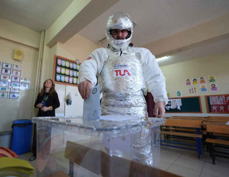 Türkiye yerel yöneticilerini seçmek için oy kullanıyor. Seçim, renkli görüntülere de sahne oluyor. Düzce'de muay thai milli sporcusu Muhammet Bişgin, kendi tasarladığı astronot kıyafetiyle, Adana'da bir kişi ise kral kostümü ile sandık başına gitti.