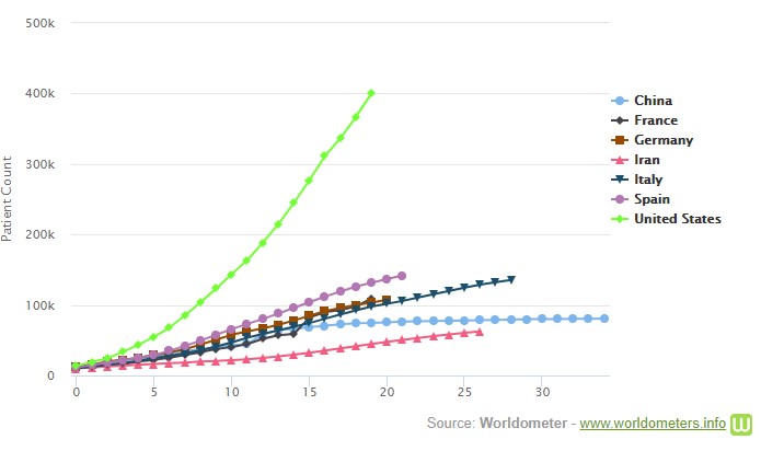 Salgının Çin ve İtalya'dan sonra 3. merkezi olan ABD'de toplamda 400 bin vaka bulunurken, hayatını kaybedenlerin sayısı 13 bine yaklaştı.