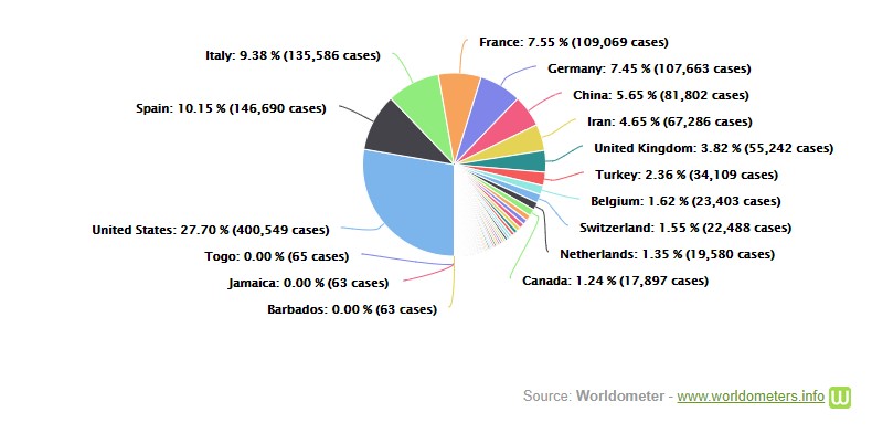 Tüm dünyada vaka sayısı 1 milyon 446 bin olurken, hayatını kaybeden kişi sayısı toplamda 83 bini aştı.