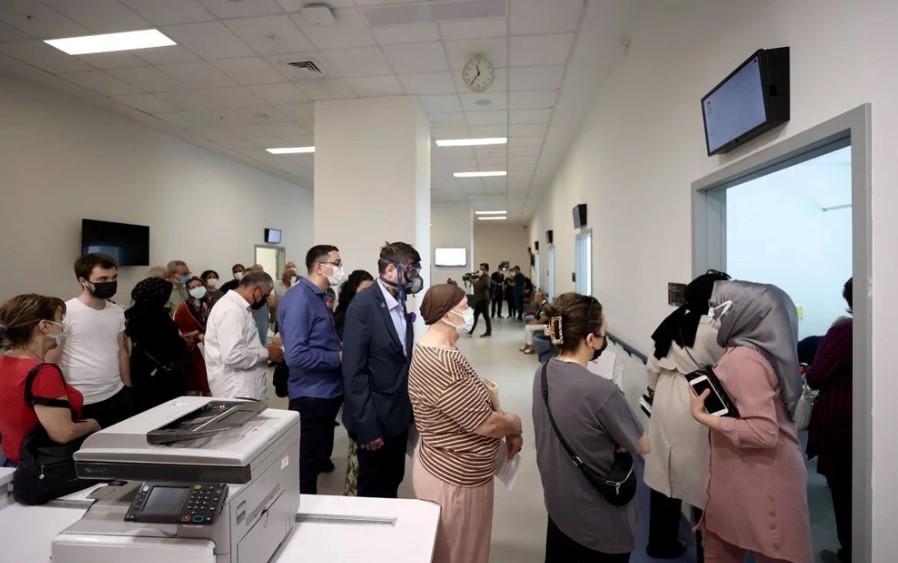 Sağlık Bakanlığınca Kovid-19'a karşı yeni hatırlatma dozu randevularının tanımlanmasının ardından Ankara Şehir Hastanesi'ne aşılarını olmak için gelen vatandaşlar uzun kuyruk oluşturdu.