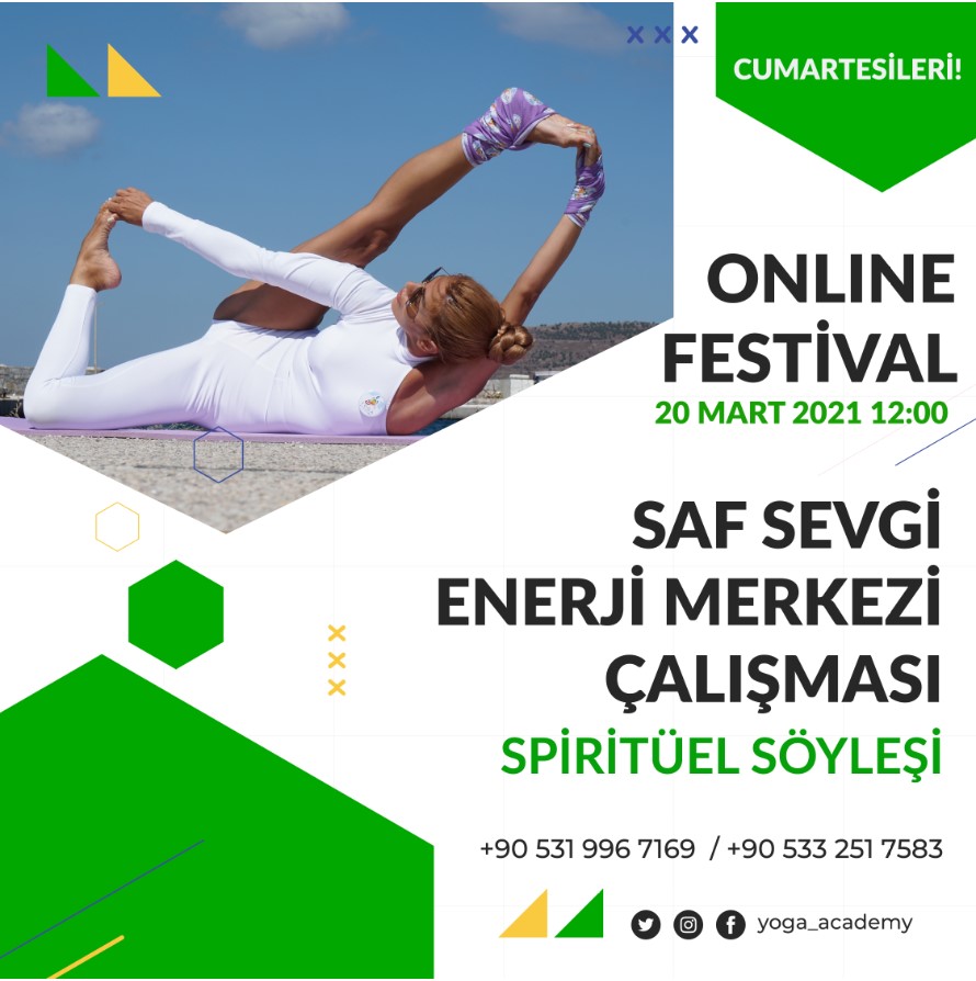 Online fstivaldeki Saf Sevgi Enerji Merkezi Çalışması ile katılımcılara, nefes, biyoenerji, konsantrasyon, gevşeme gibi alanlarda yürütülen teknikler sunulacak. Festivalde yapılacak olan çalışmaların yararları ise uzmanlarca şöyle açıklanıyor: “Nefes çalışmaları ile sinir sistemi gevşer. Böylece kişi olaylara daha pozitif ve çözüm odaklı bakmaya başlar. Öfke kontrolü sağlanır. Biyoenerji çalışmaları ile organizma enerji ile dolar ve kişi kendisini daha mutlu hisseder. Vücut çalıştırma teknikleri bedenin hem güçlenmesine hem de esnekliğinin artmasına yardımcı olur. Evde olup, daha az hareket etmenin getirdiği fiziksel problemler giderilir. Metabolizma hızlanır. Teknikler, sağlıklı ve kalıcı zayıflamaya büyük katkı koyar. Konsantrasyon teknikleri sayesinde odaklanma gelişerek, zekâ aktifleşir. Gevşeme çalışmaları sayesinde stres, gerilim ve günümüzün en sık rastlanan problemlerinden olan uykusuzluk ve depresyon giderilir. Moral ve motivasyon artar. Çalışmalar, içinde bulunduğumuz Kovid-19 sürecinde bağışıklık sistemini güçlendirerek, virüse karşı dayanıklılığı artırır.”