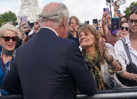 Kral Charles, İskoçya'dan döndükten sonra sevenlerinin elini sıktı, taziyeleri kabul etti ve sarayın dışına bırakılan çiçeklere baktı.