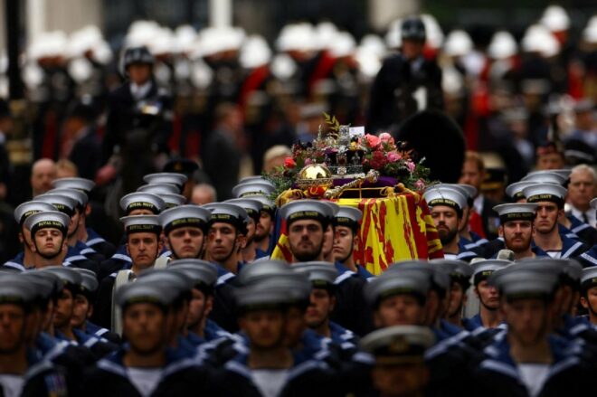 Törenin ardından Kraliçe Elizabeth'in üzerinde tacının yanı sıra çiçeklerin bulunduğu tabutu, Hyde Park'ın girişindeki Wellington Arch'a ve oradan da defnedileceği Windsor'a götürülecek.