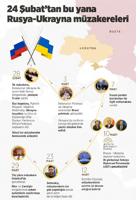 Diğer taraftan Rus ve Ukraynalı müzakereciler, Rus kuvvetlerinin 24 Şubat’ta Ukrayna’ya girmesinden bu yana yana ara sıra görüşmeler yapıyorlar, ancak her iki taraf da müzakerelerin ilerlemediğini açıkladı.