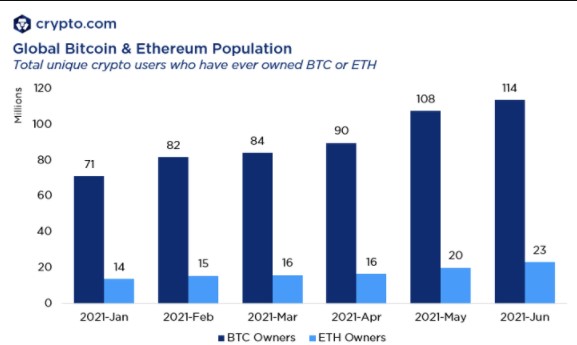 Dünya genelinde BTC ve ETH kullanıcılarının sayısı. Kaynak: Crypto.com