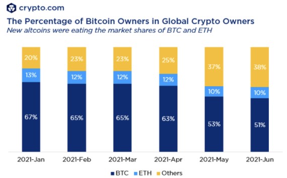 Kripto kullanıcıları arasında BTC, ETH ve diğer kripto para sahiplerinin oranı. Kaynak: Crypto.com