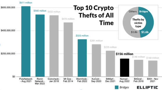 Nomad saldırısı 2022 yılındaki 7. 'köprü' saldırısı oldu. Bu saldırılarda 1.2 milyar dolarlık kripto para çalındı. Geçen yıl ise benzer bir işleve sahip olan PolyNetwork'ten 611 milyon dolarlık kripto para çalınmıştı.