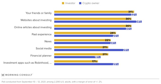 Kripto para sahiplerinin tutumları üzerine yapılan bir araştırmada, arkadaş ve akrabadan tavsiye almanın yaygın olduğu, ünlü isimlerin sözlerinin fazlasıyla etki meydana getirdiği ortaya çıktı.